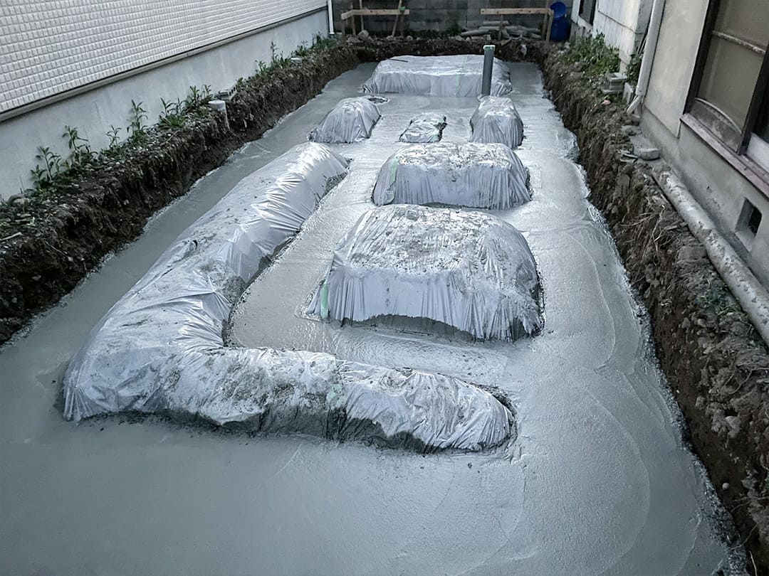 掘削・捨てコン・配筋と、ひとつひとつの工程を慎重に積み上げながら、鉄筋コンクリート造の基礎を形成しました。