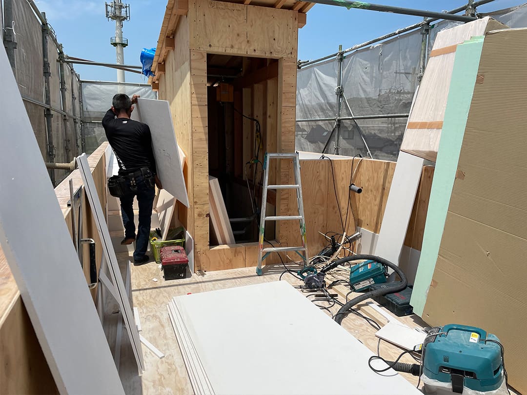 内装工事では、壁下地・断熱・配線配管の経路を再設計し、メンテナンス性と省スペース化を両立。