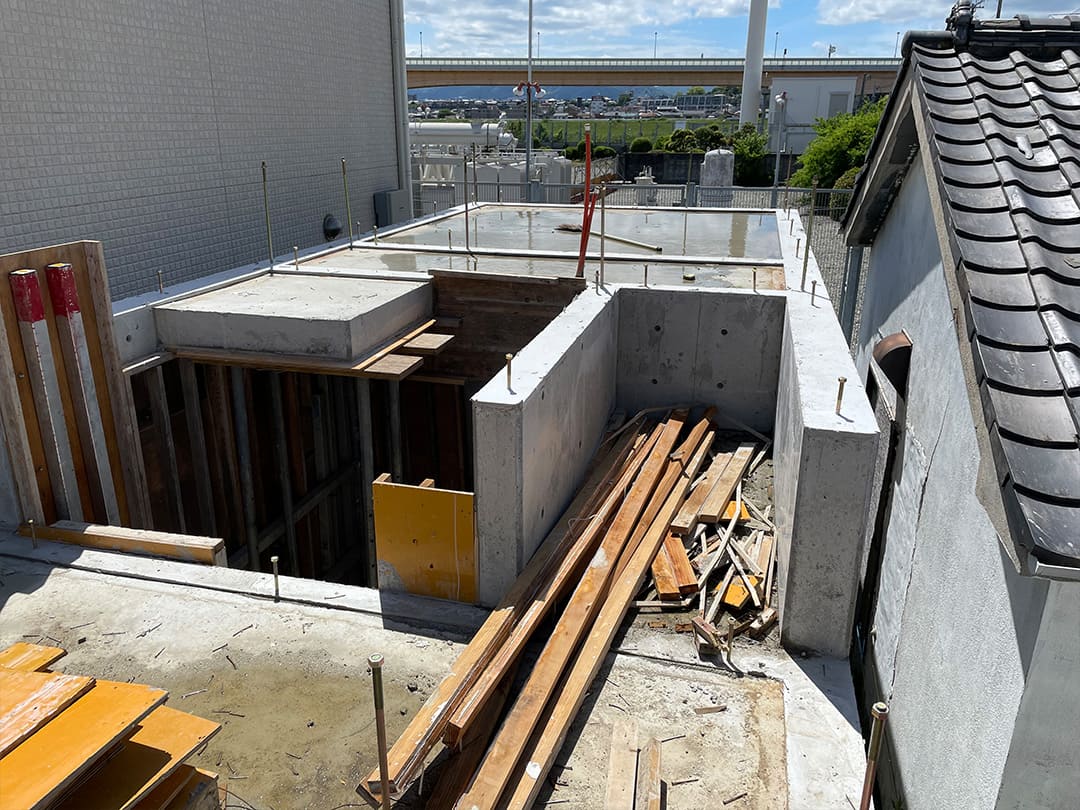 コンクリート強度、かぶり厚、立上り精度を検証しながら施工を進めました。